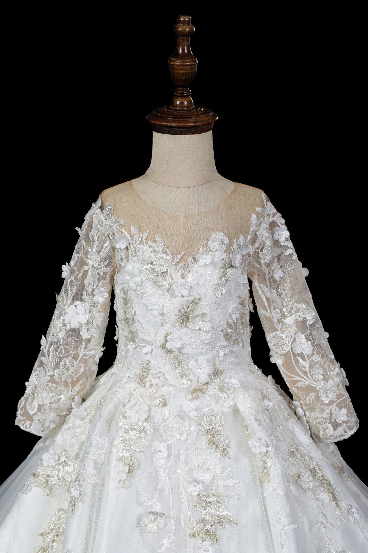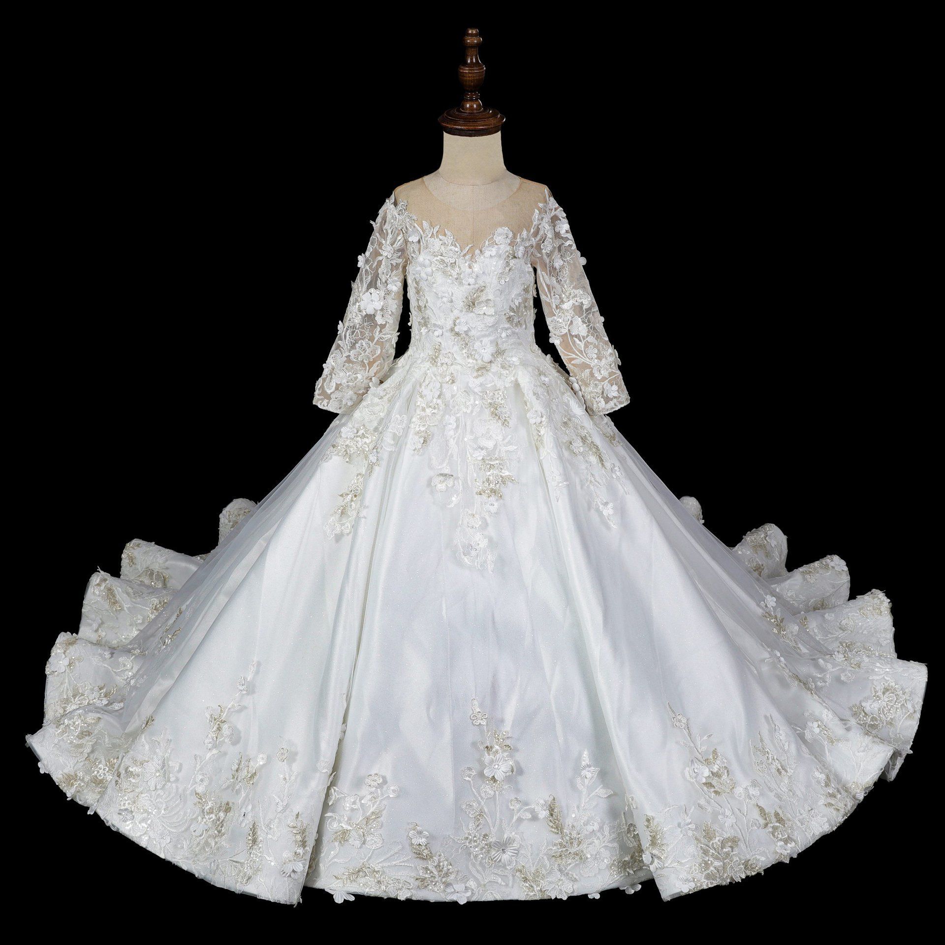 Communiejurk Gioya is een prachtige mini versie van onze trouwjurk Amira. De top van deze communiejurk is gemaakt met een mooie wit/silver/gouden kant bewerkingen met een off shoulder neklijn / lange mouwen. Wil je deze communiejurk met een extra lange sleep of volledig bewerkt rok? Dat is mogelijk! Wij maken alle communiejurken naar wens en op maat!