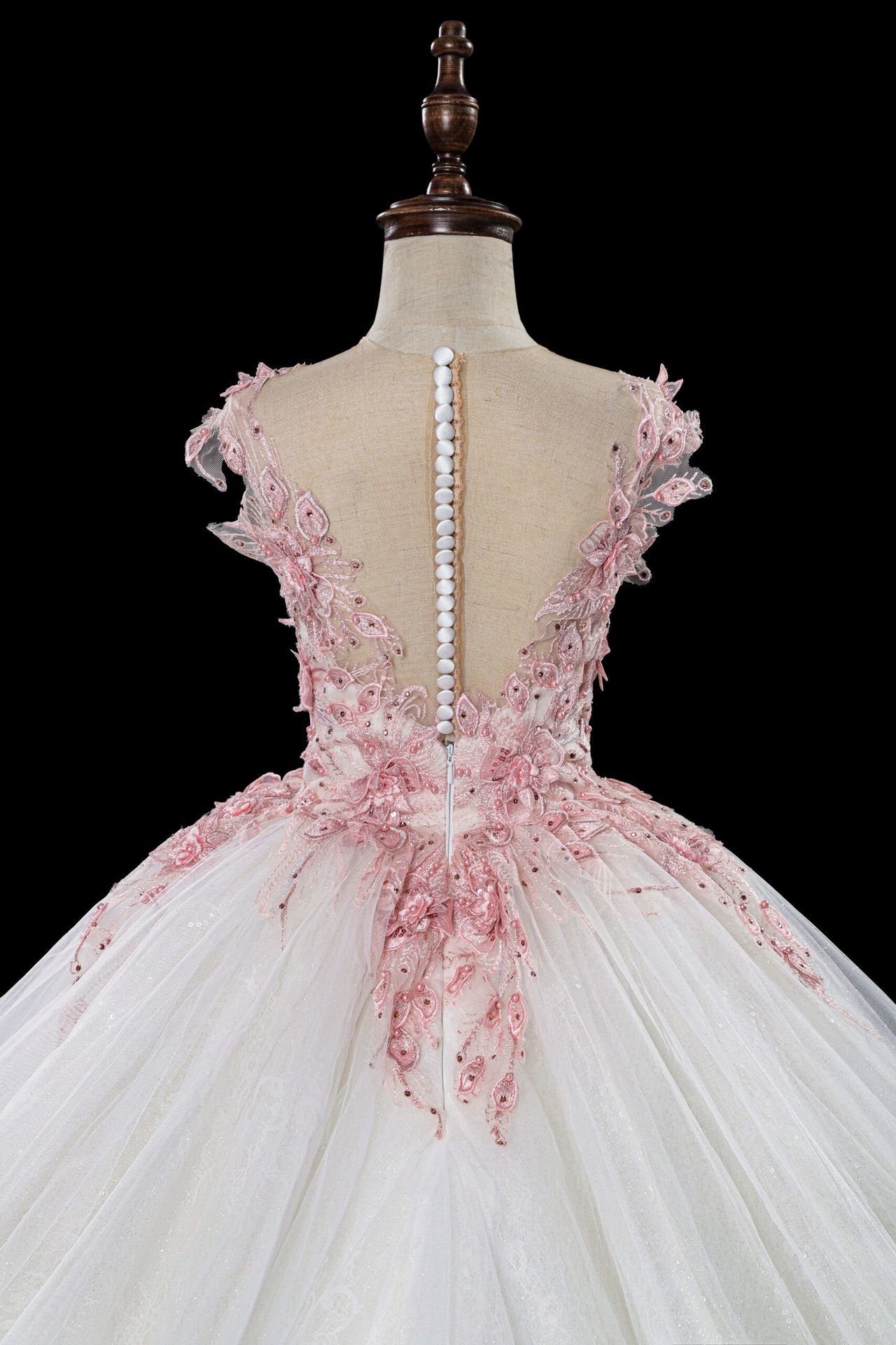 Communiejurk Sivana is een prachtige wit met combinatie van rose kant / steentjes applicaties prinses jurk. De top van deze communiejurk is gemaakt met een mooie wijde V hals en een prachtig lage rug met knoopjes. Wil je deze communiejurk met een extra lange sleep of volledig bewerkt rok? Dat is mogelijk! Wij maken alle communiejurken naar wens en op maat!