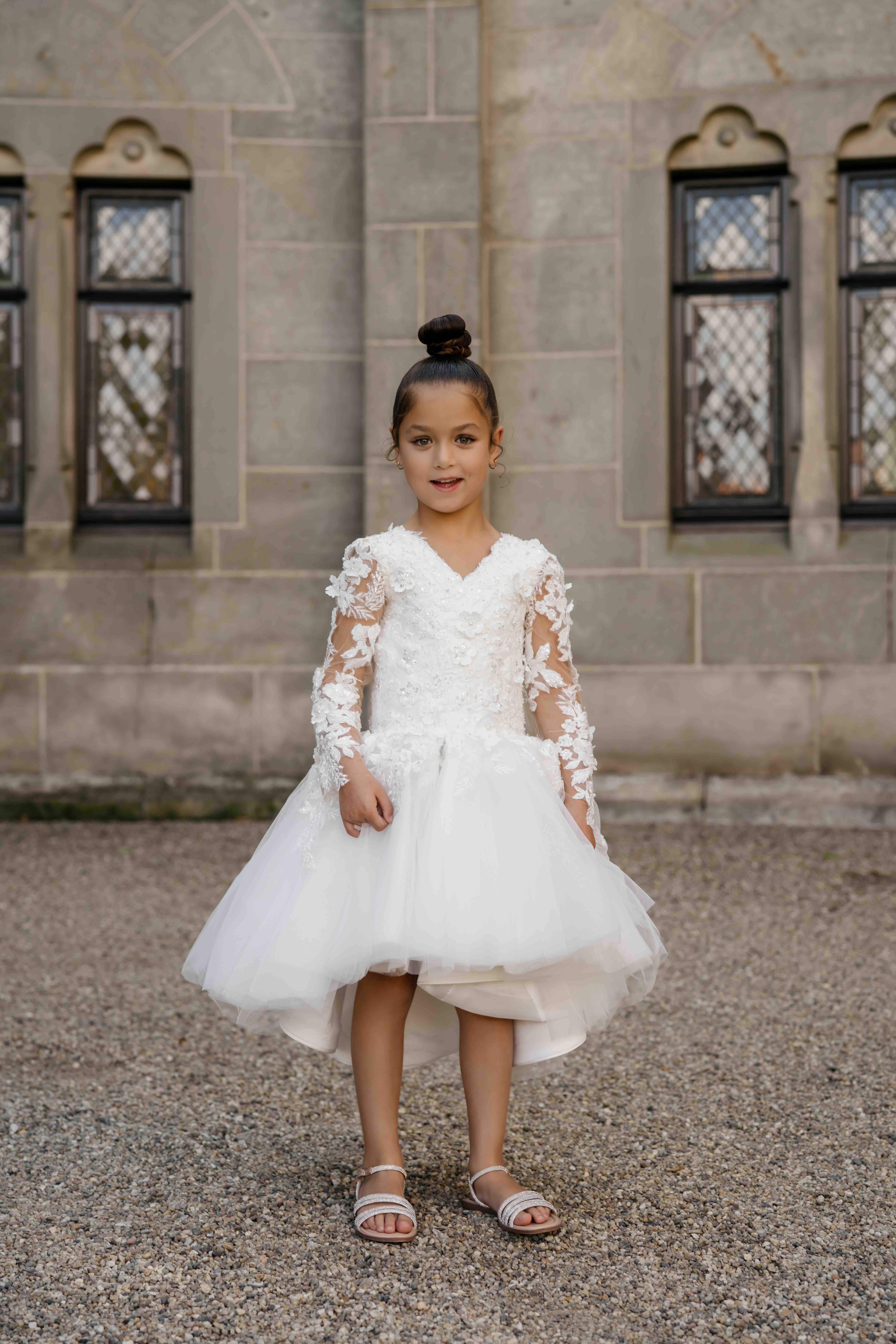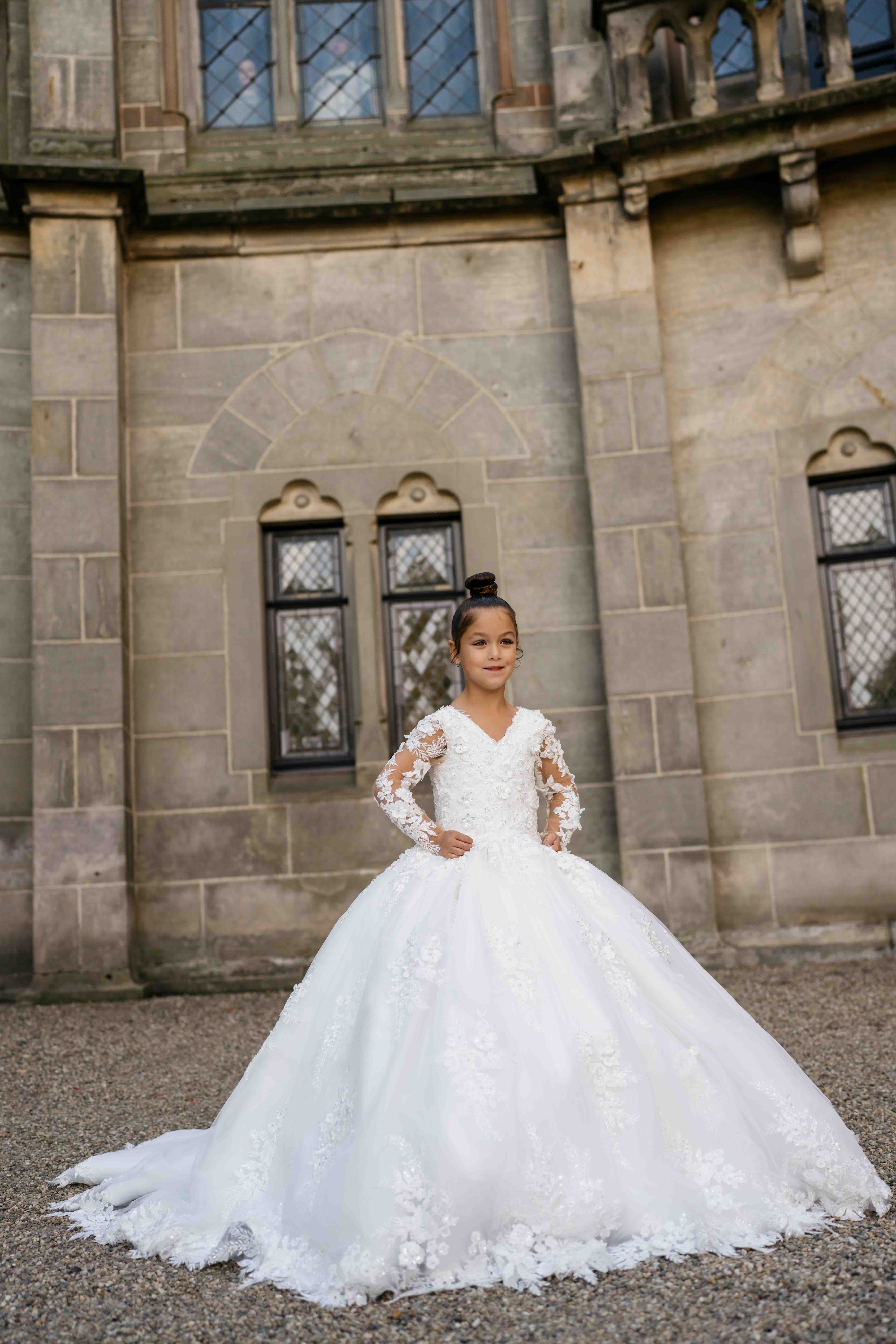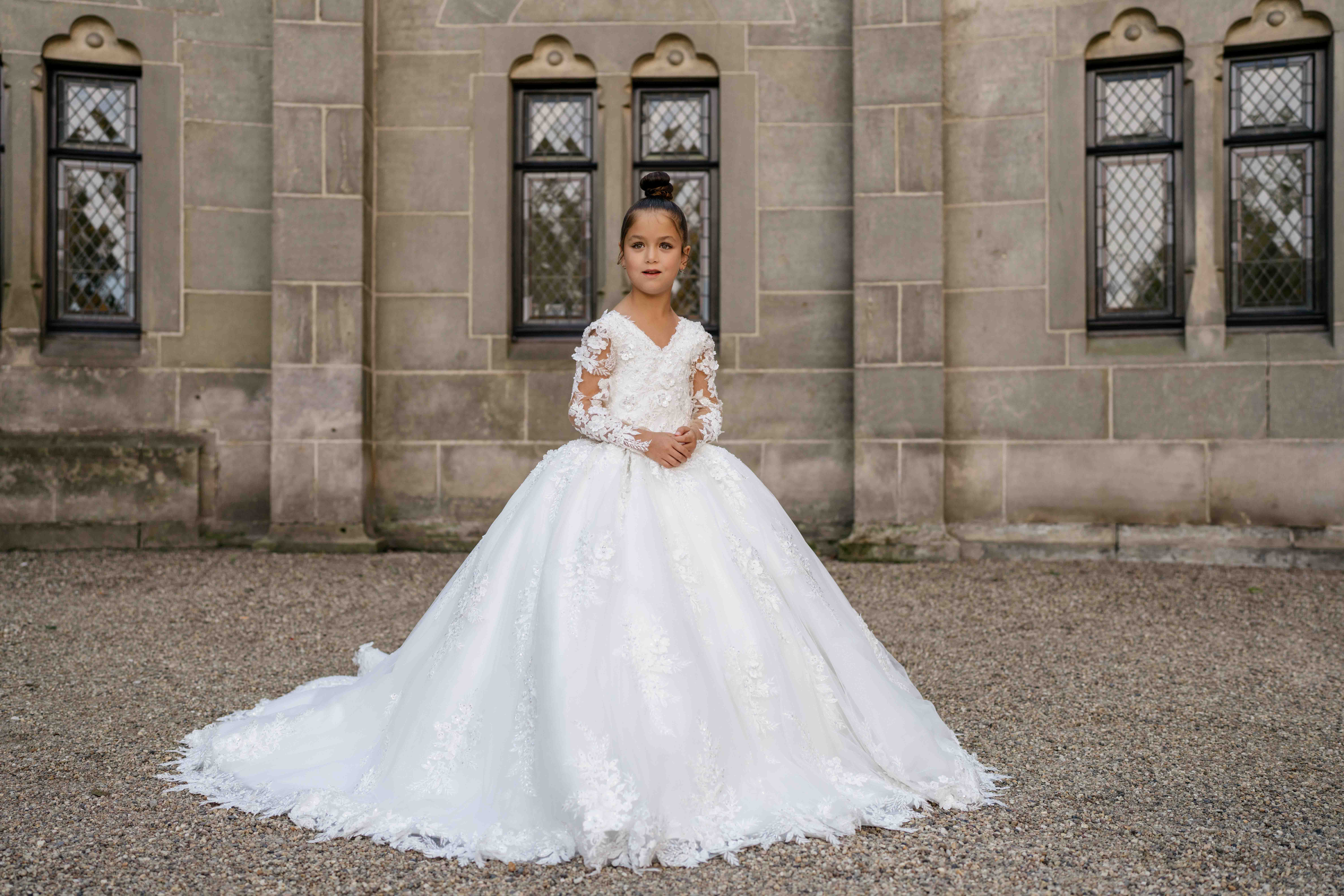 Al onze communiejurken worden naar wens en speciaal op maat gemaakt. Kom deze prachtige communiejurk passen in de winkel!