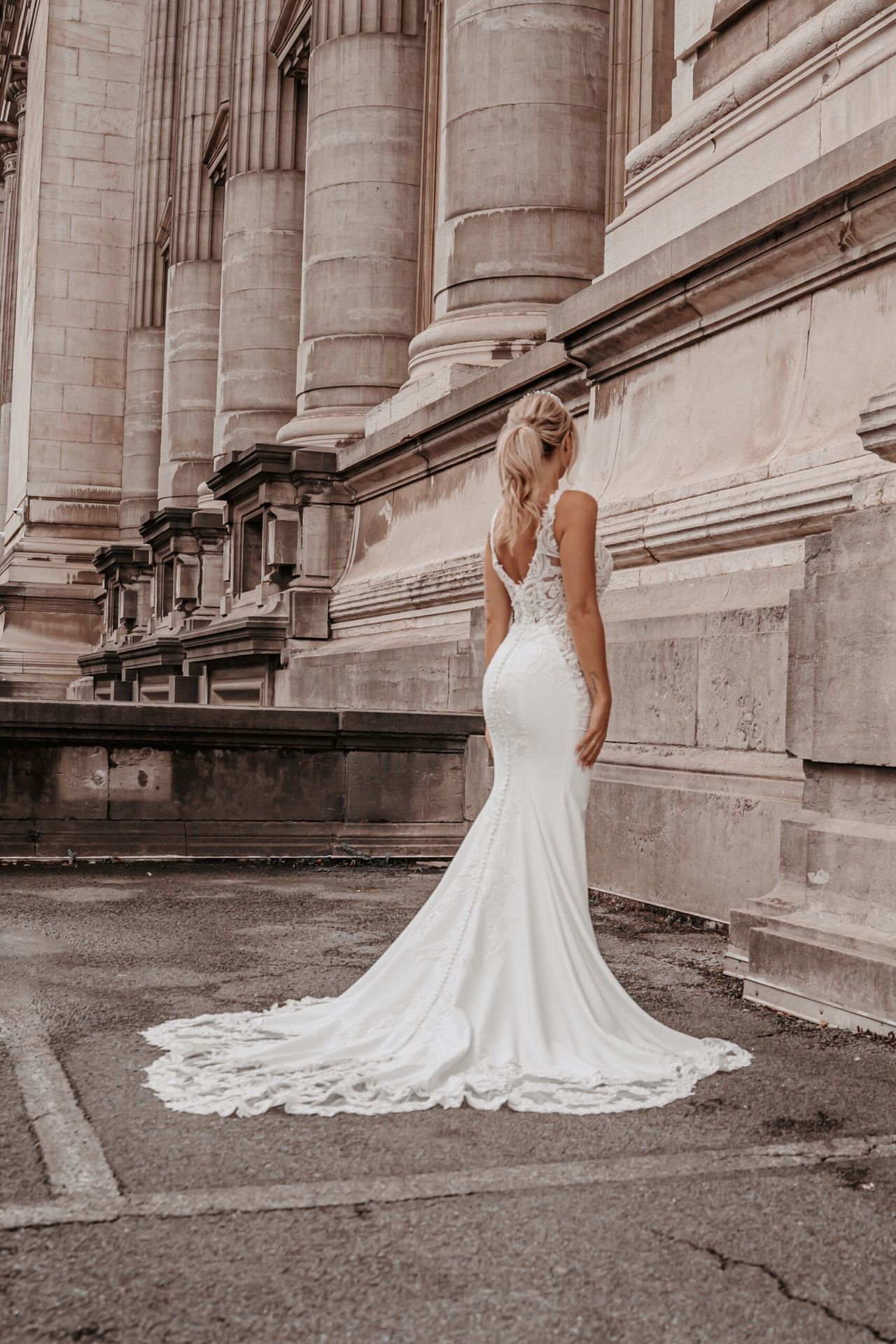 Trouwjurk Celeste is een favoriet zeemeermin design van 2024! Waarom? omdat het een combinatie is van modern en sexy maar daardoor niet minder elegant.