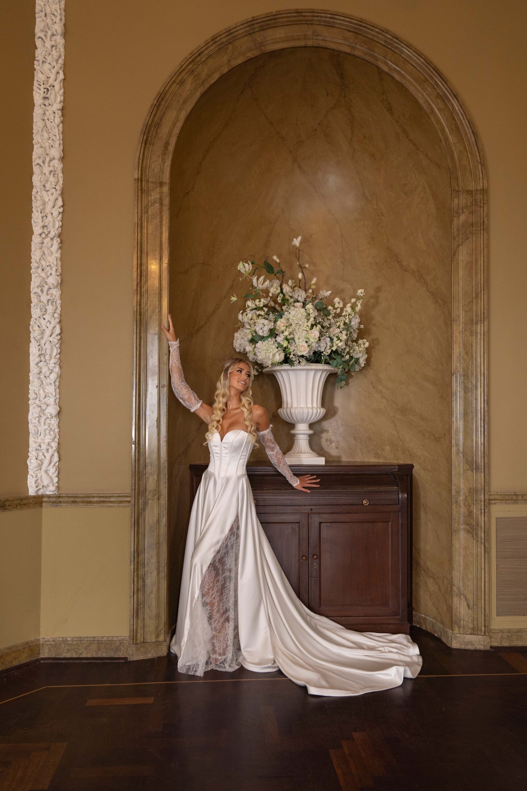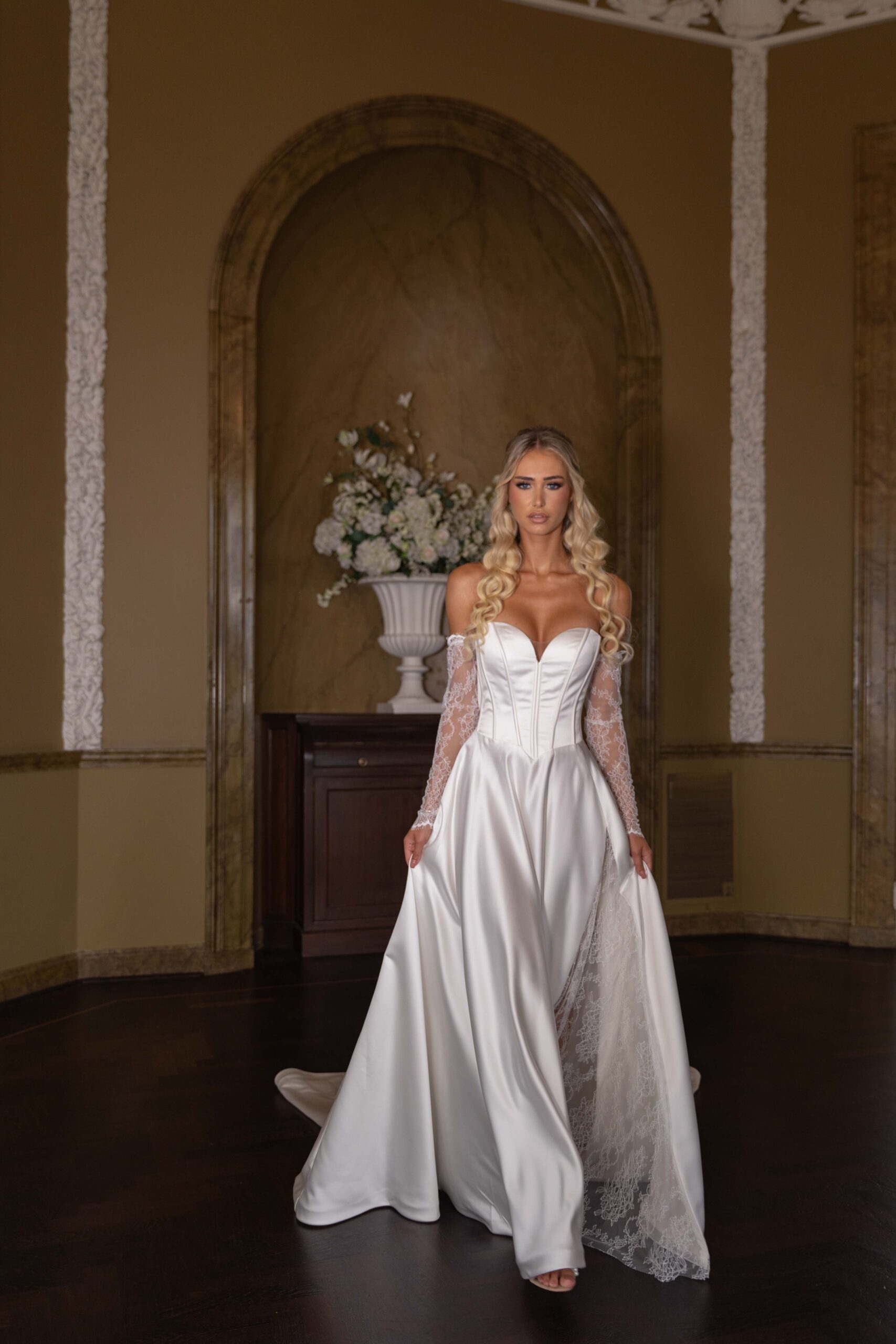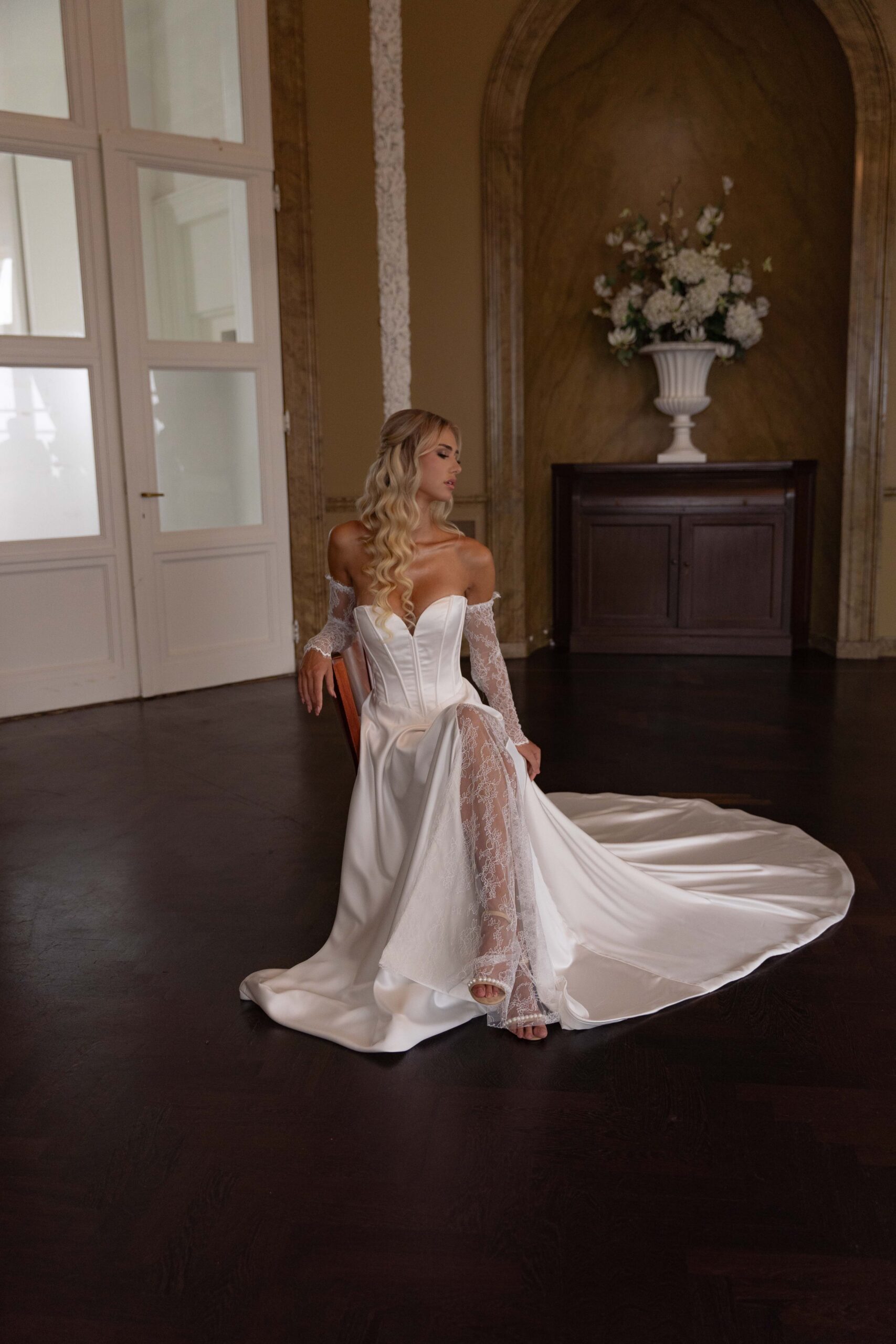 Trouwjurk Lily is een exclusieve design vanuit onze nieuwe satijnen trouwjurken. De jurk heeft een prachtige corset body en een mooie kantensplit in de rok. De trouwjurk wordt volledig naar wens en speciaal op maat gemaakt.