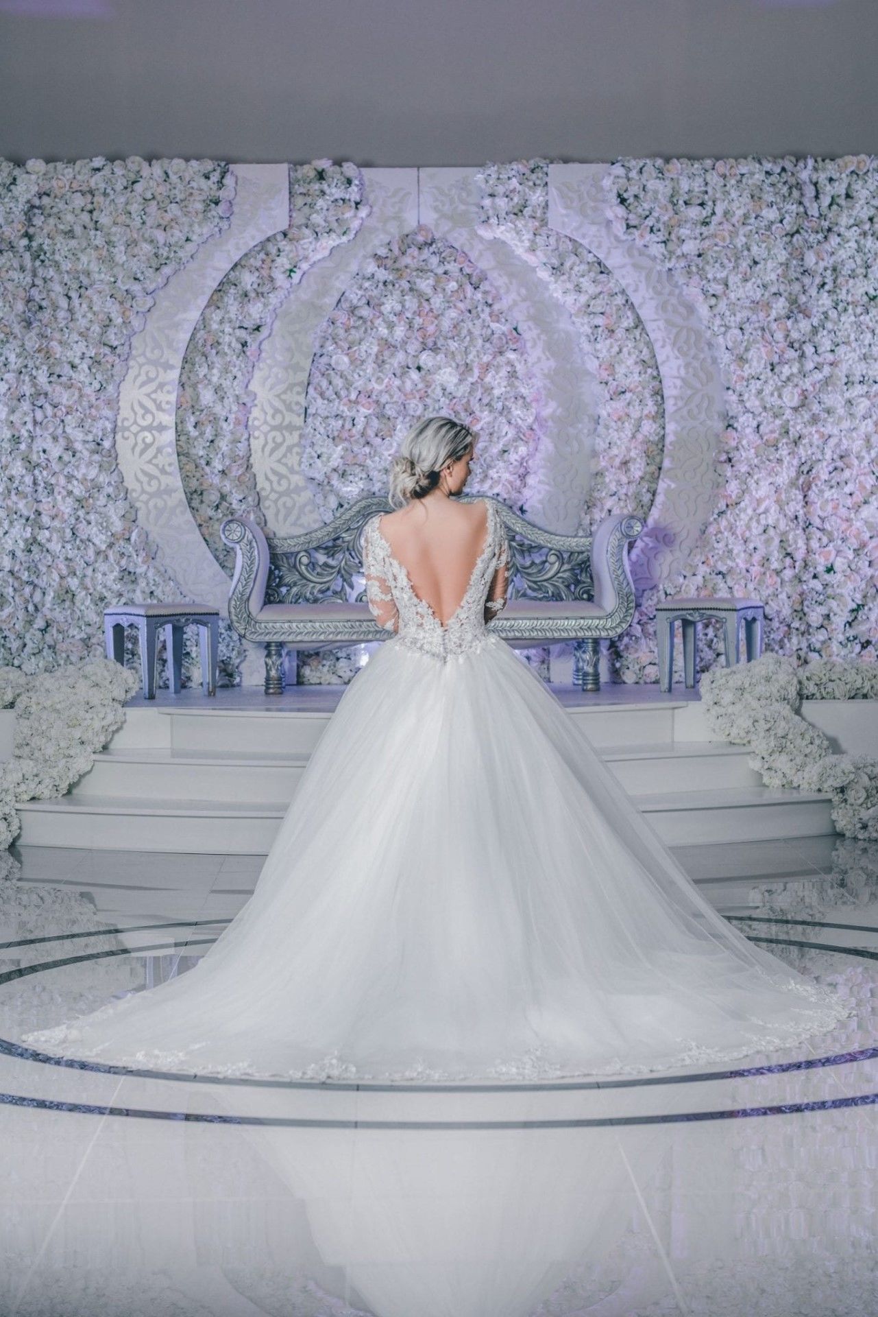Trouwjurk Sabina is een klassiek design van kant, lange mouwen en een tulle rok combinatie. De rok heeft nog een mooi bewerkte kantrand wat net even een andere afwerking geeft dan alleen tule. Het aparte en mooie van deze design is de open V-rug. Kom deze bruidsjurk passen en laat je inspireren door vele prinses trouwjurken!