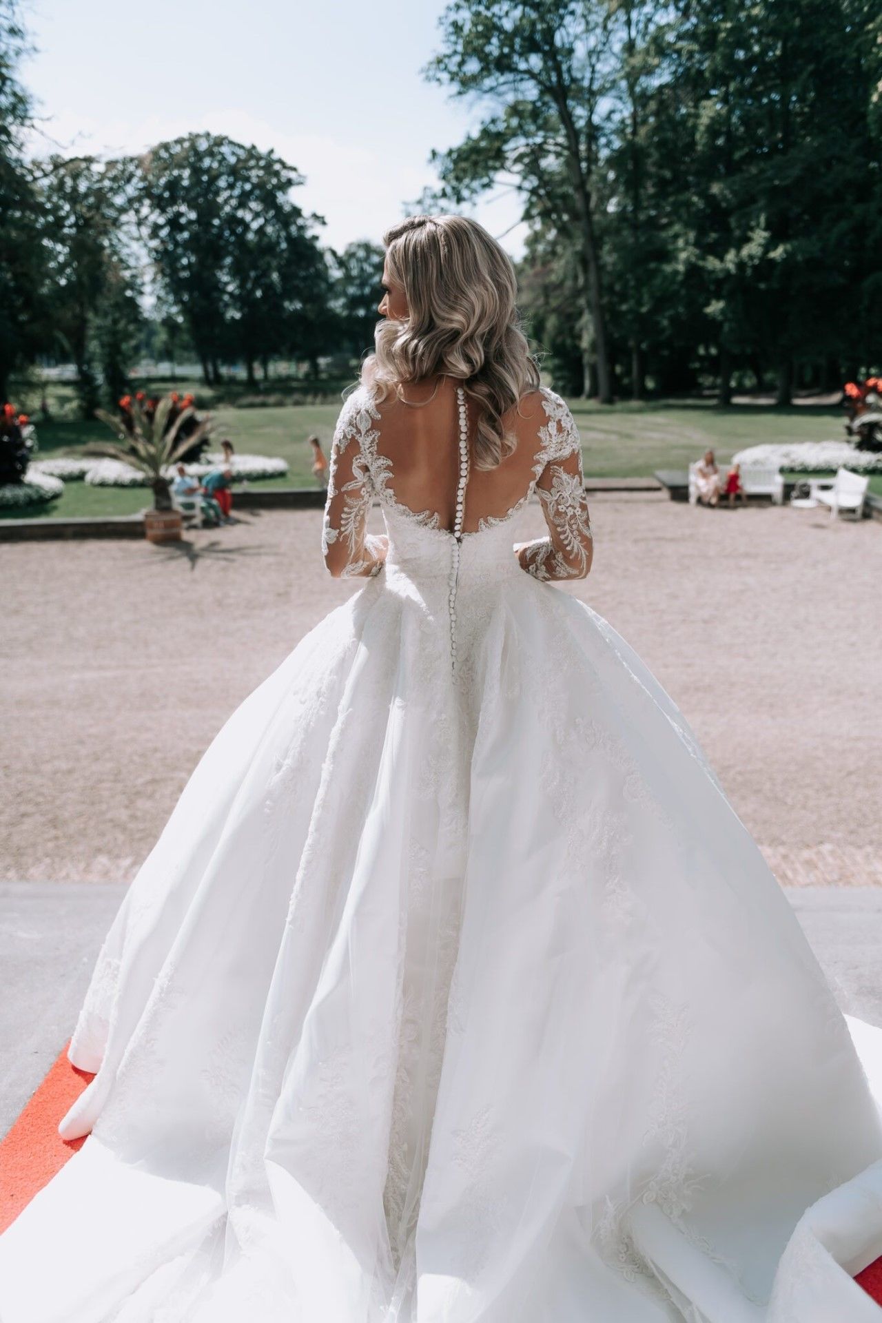 Trouwjurk Samra is een mooie prinses jurk gemaakt van satijn met mooie kant applicaties die een beetje glinsteren door de transparante steentjes. De trouwjurk heeft een prachtige decolleté en een mooie open rug. De sleeplengte is 1 meter, uiteraard by ALBERTO AXU Couture is het mogelijk om de sleep langer of korter te nemen. Alle trouwjurken worden naar wens en op maat gemaakt.