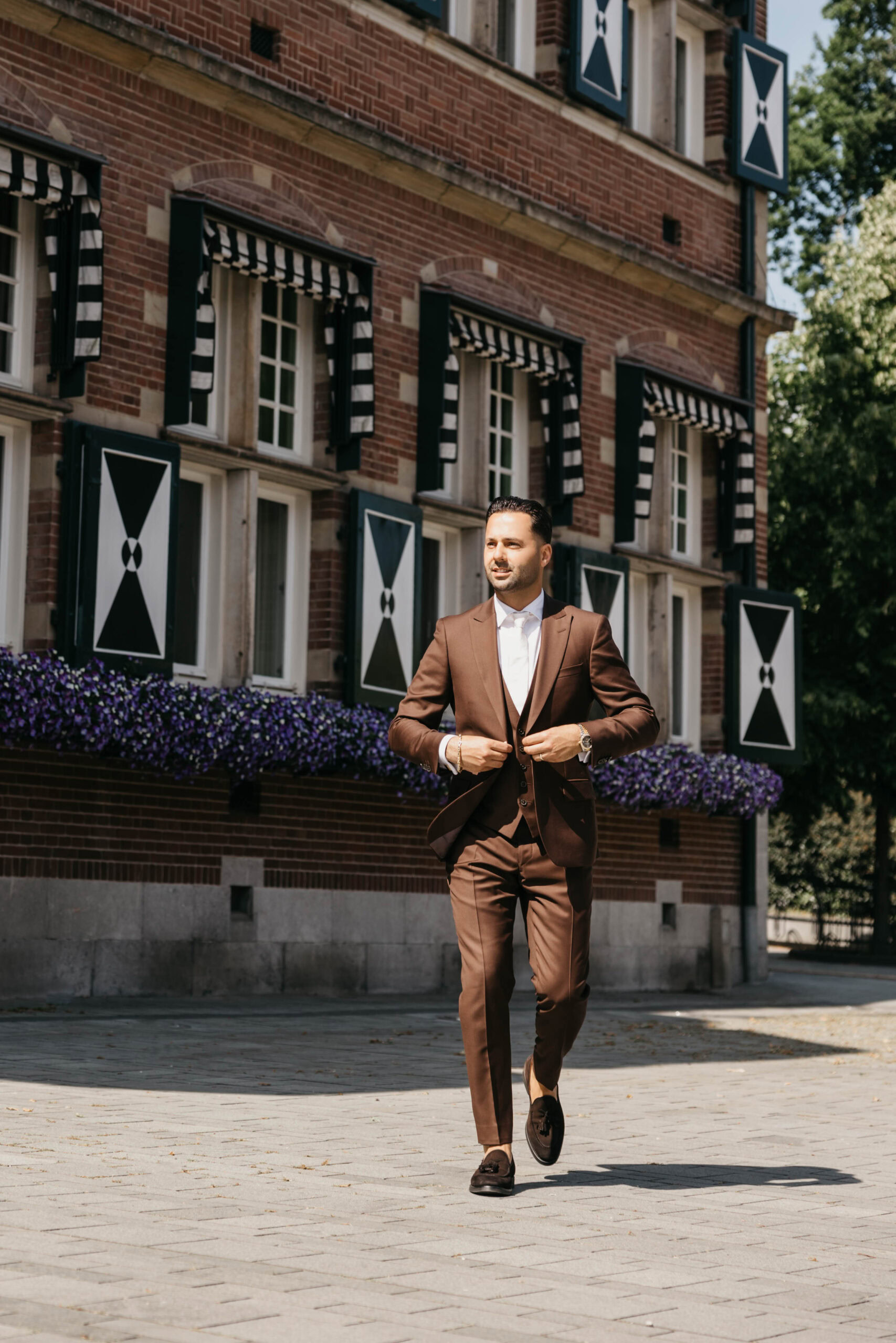 Trouwpak 3-delig donker bruin