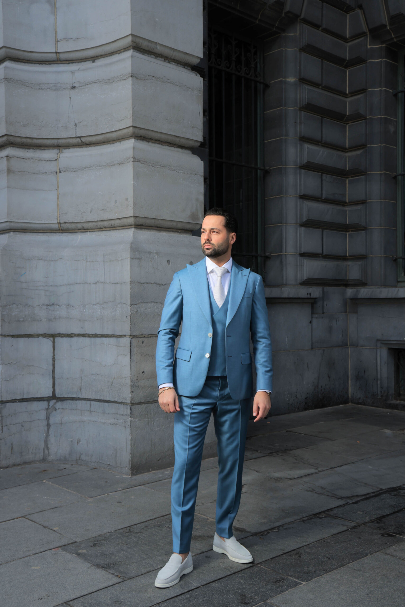 Trouwpak 3-delig ijs blauw