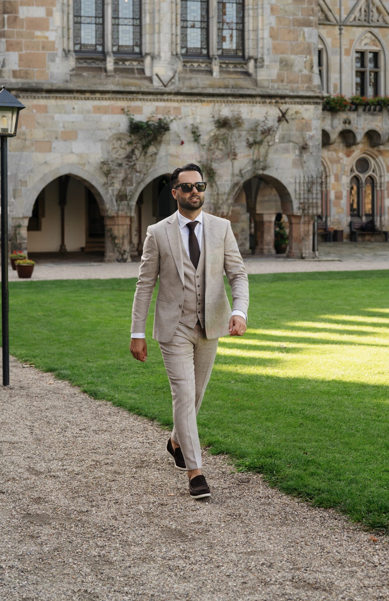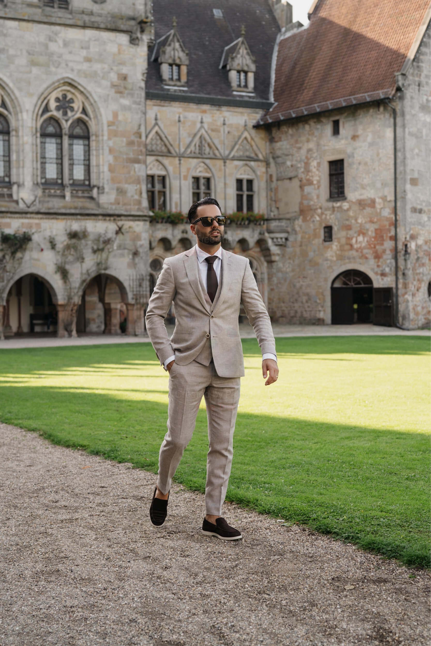 Trouwpak 3-delig taupe – bruin